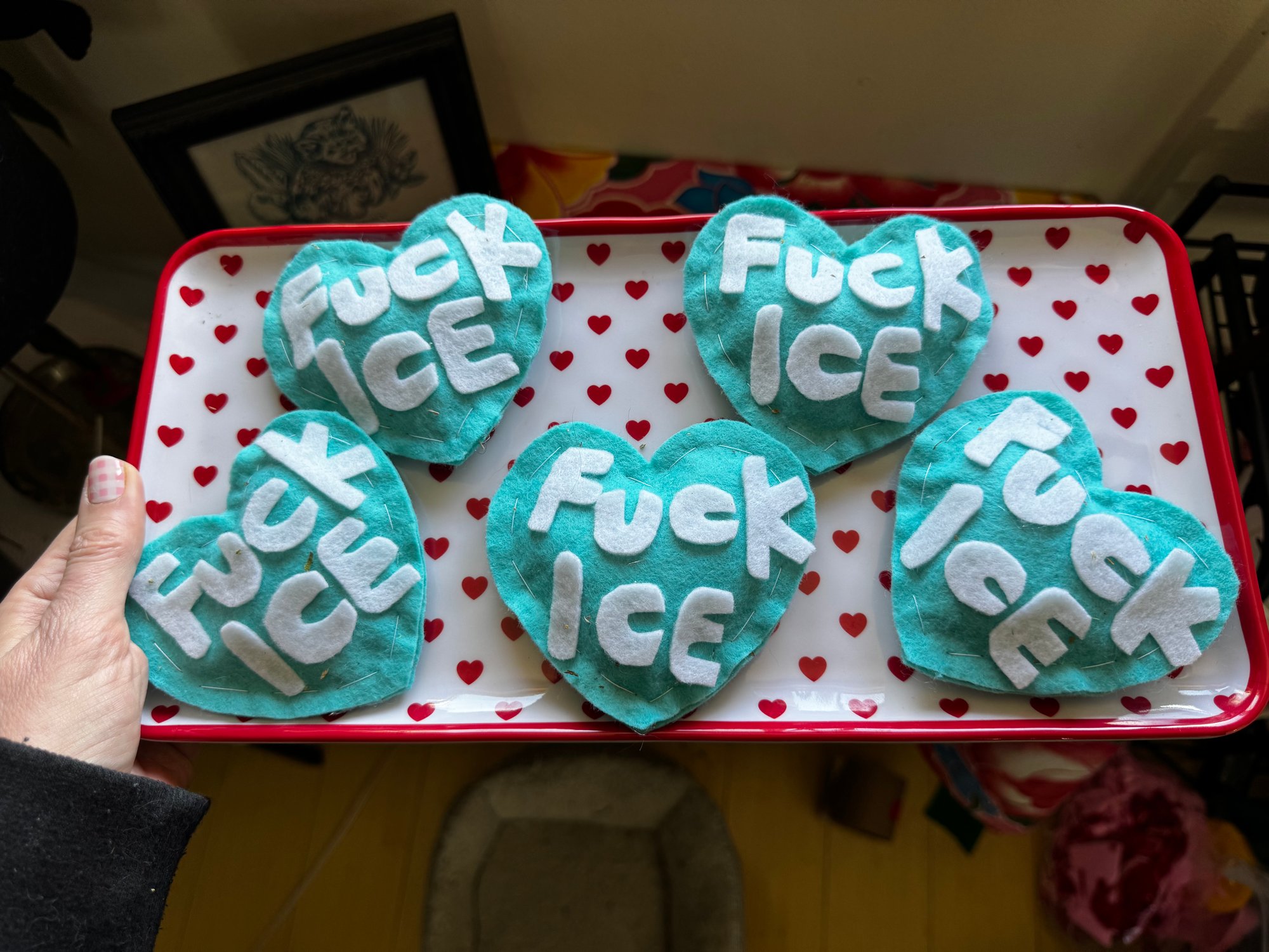 Hand cut letters so no two will be exactly identical. Acrylic felt heart filled with organic catnip and silver vine.